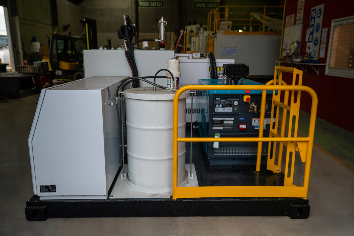 | No 3 | Waste Oil, Spring Retract Reel, 15m x 3/4″ Hose & 4 Way valve to evac. Site Tube for tank level | 500 litre |