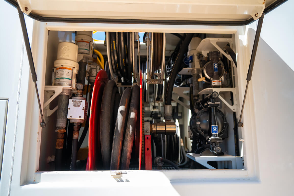 - All pumps are fully enclosed inside RHS pump cabinet along with Hose Reels and Pumps