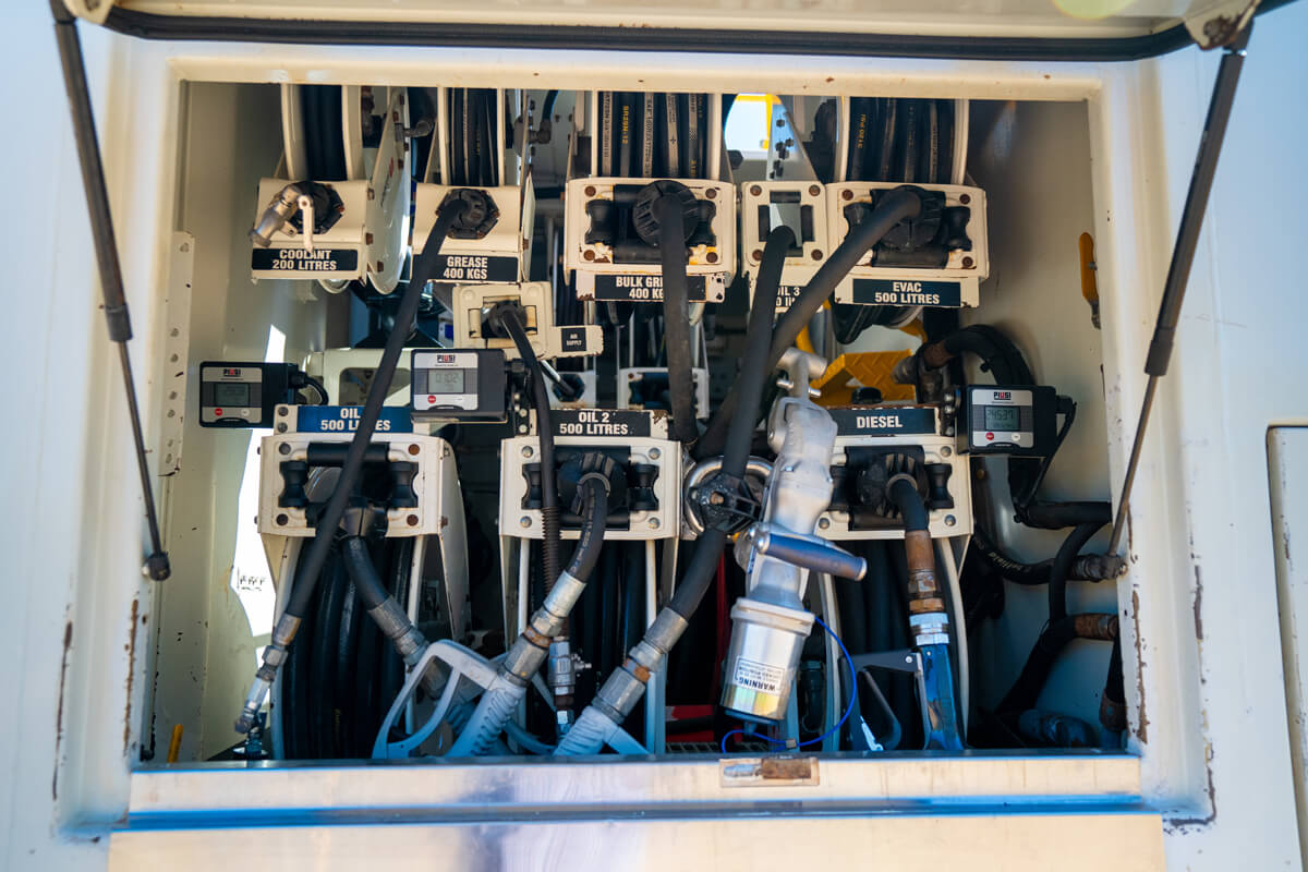| No 1 | Diesel reel, hose, Wiggins hand piece, Diesel reel, hose, Light Vehicle hand piece | 9,000 litre |