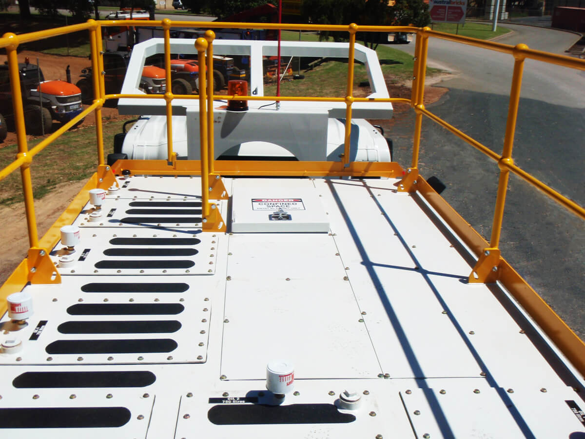 - Top safety rails and steps