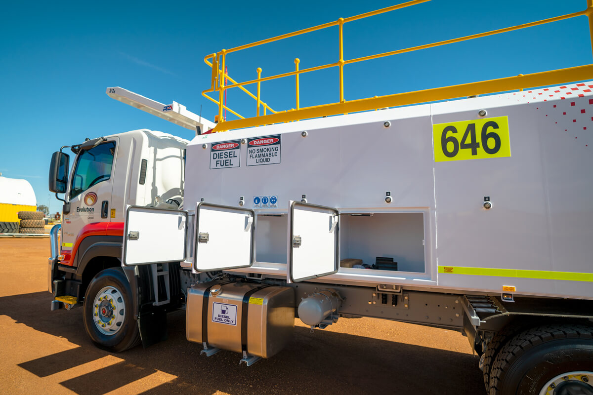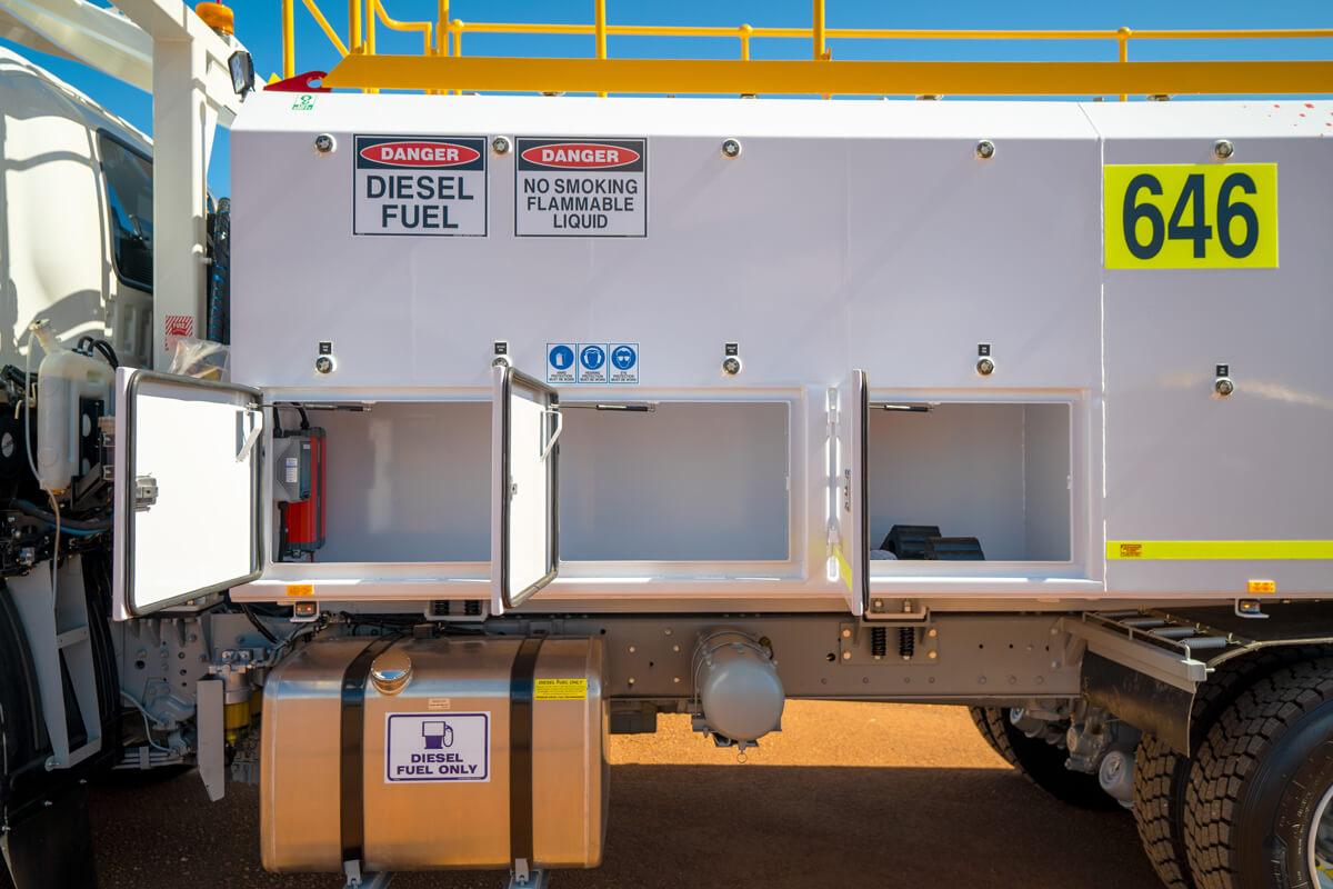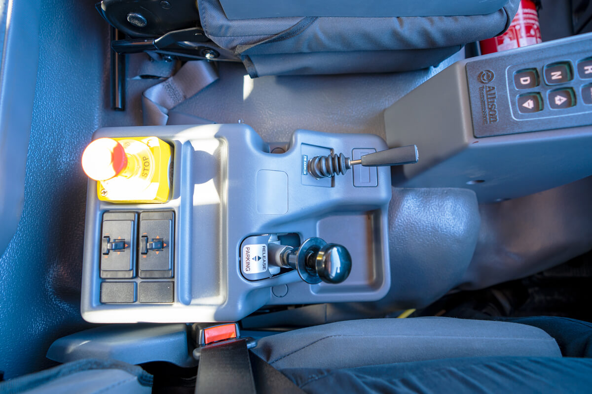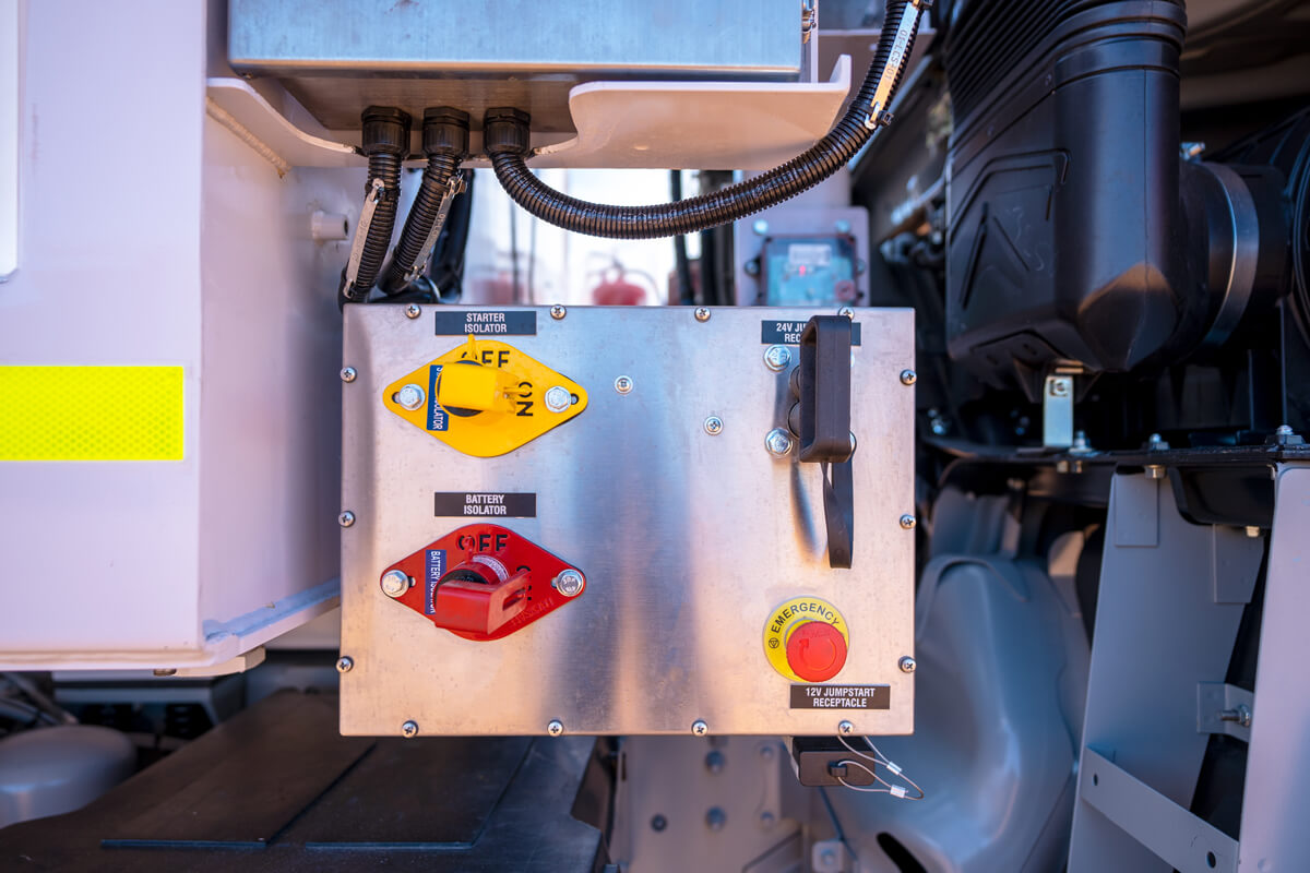 - Truck – E-Stop in cabin, on front of module, Dual Pole Lockable Battery Isolator, Lockable Starter Isolator and Jump Start Receptacle