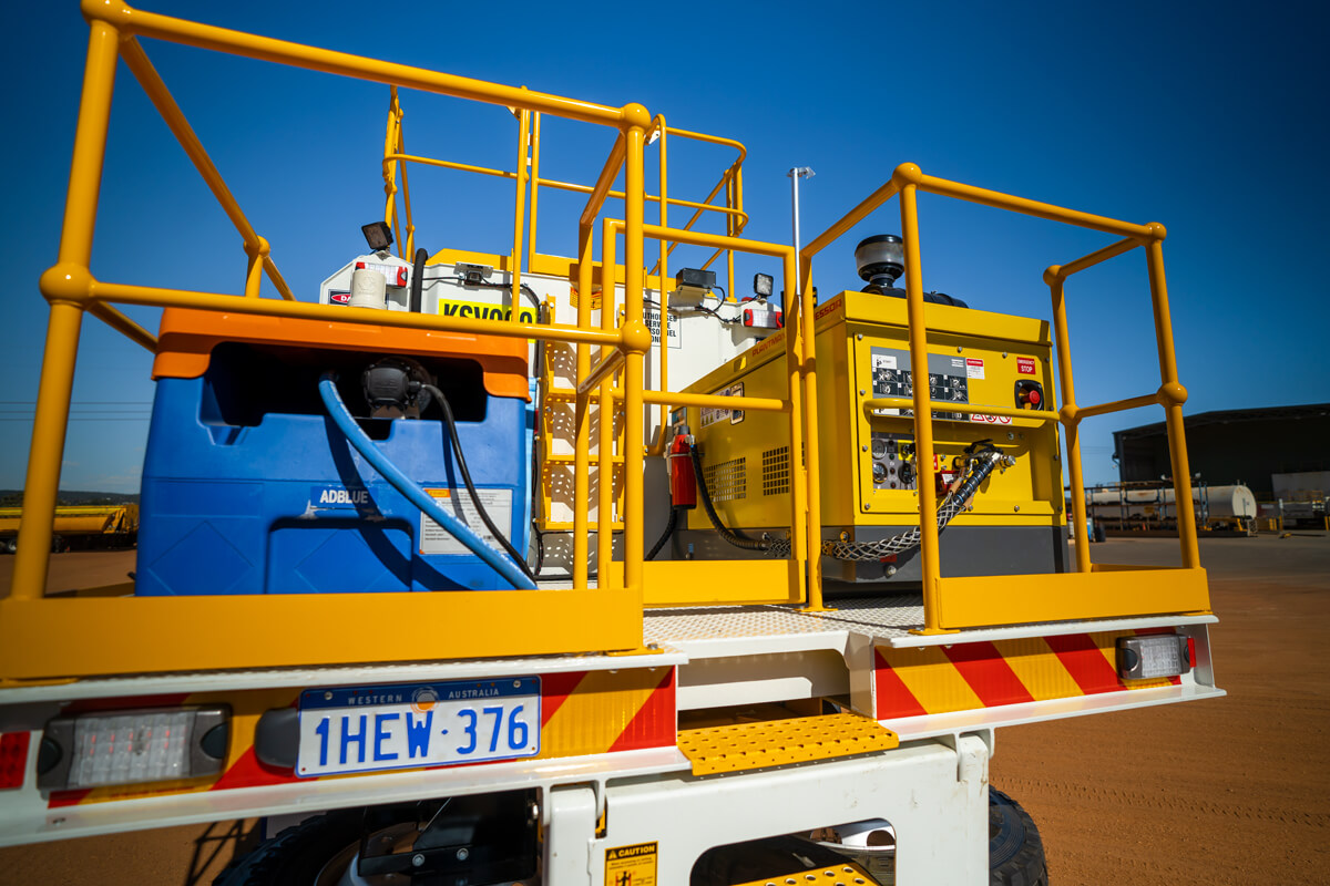 - Rear Tray for compressor and grease with Ladder access to the tray from ground level and the module roof with fold