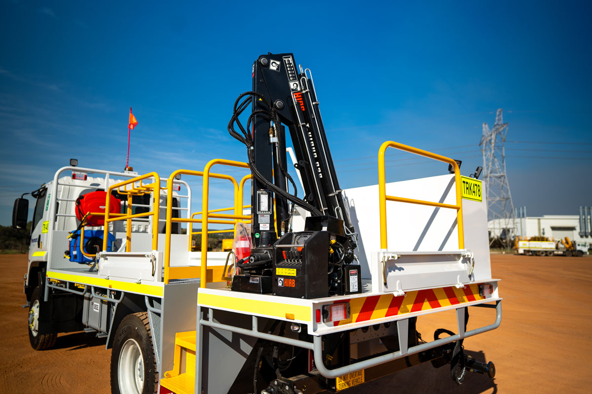 • Rear tray deck mounted HIAB 038-4 Hydraulic Truck Crane with Rear Stabiliser Legs