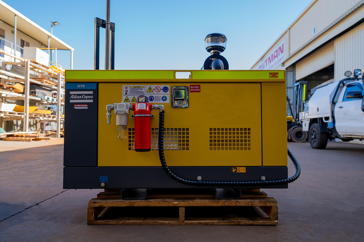The portable Atlas Copco Air Compressor U75 provides 75CFM free air delivery and 100psi (g) normal effective working air pressure. This full mine spec, compact, lightweight package has all the integrated features needed on the job.